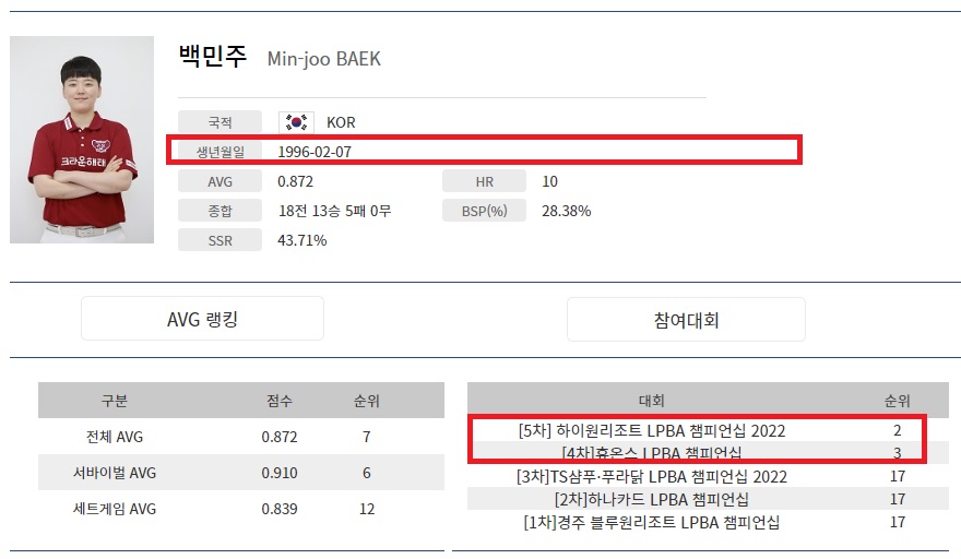 스롱피아비 잡은 백민주 당구선수 나이 프로필 상금 랭킹 순위, 하이원리조트 LPBA 챔피언십 8강전 경기결과